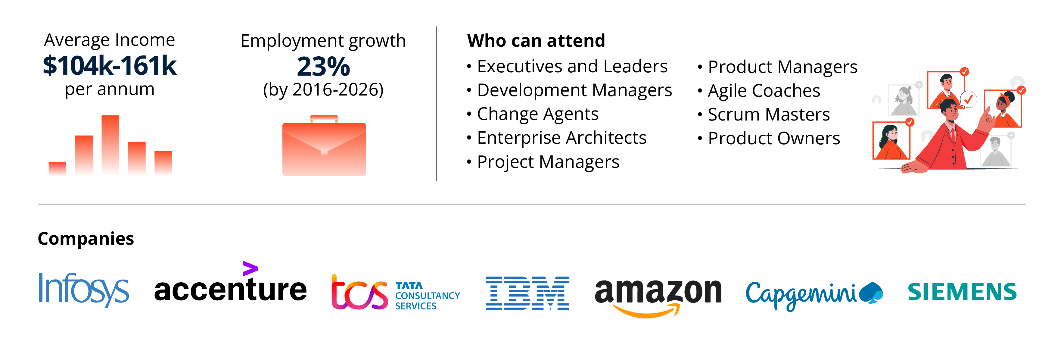 Learn how to enhance your business's flexibility with 100% accuracy and effectively implement Agile methods within your organisation. Acquiring a SAFe® Agilist certification can potentially increase your salary by at least 25% compared to those without certification. Certified SAFe® Agilists in Australia earn between AUD 120,000 and AUD 150,000 annually on average. Furthermore, this certification provides you with the skills to develop and execute plans and allows you to step into leadership roles within your organisation.