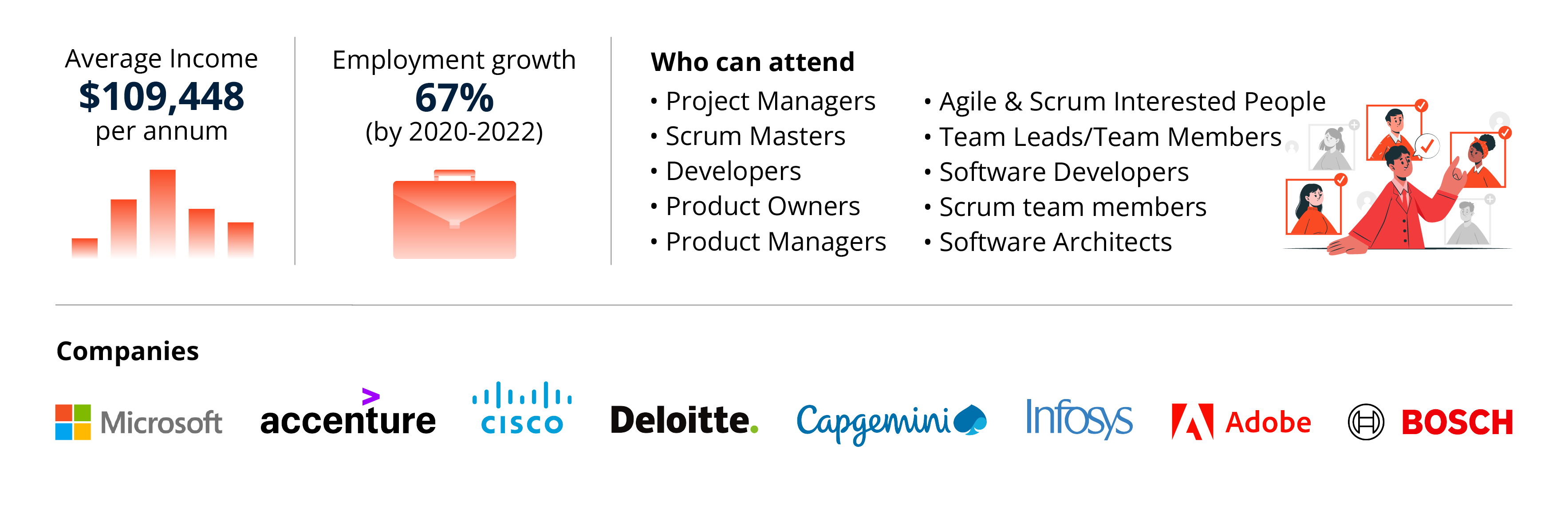 This comprehensive course ensures a profound comprehension of Scrum principles, focusing on cultivating servant leadership for optimal Scrum Master roles. Guided by Scrum. Org-accredited Professional Scrum Trainers boasting over a decade of diverse industry experience. This training will provide top-tier experience. Additionally, you can access a comprehensive set of training materials meticulously crafted by Scrum experts.