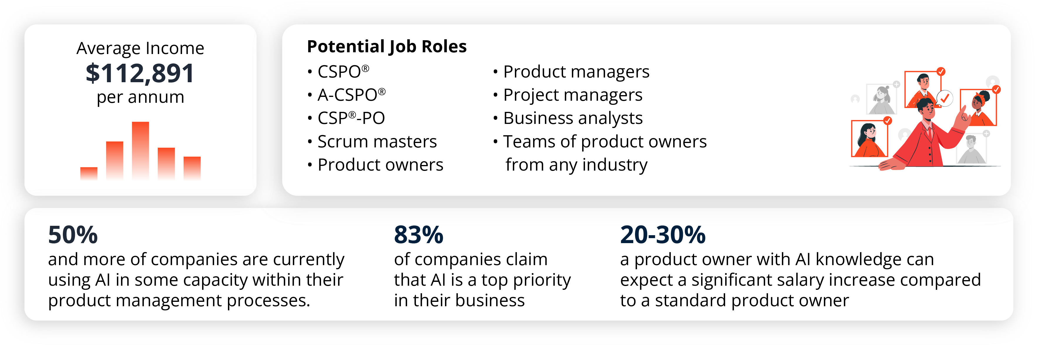 AI for Product Owners Course will help you to integrate AI tools into planning, decision-making, and refining user stories. 83% of product owners say that AI improves efficiency by making things faster and smarter.