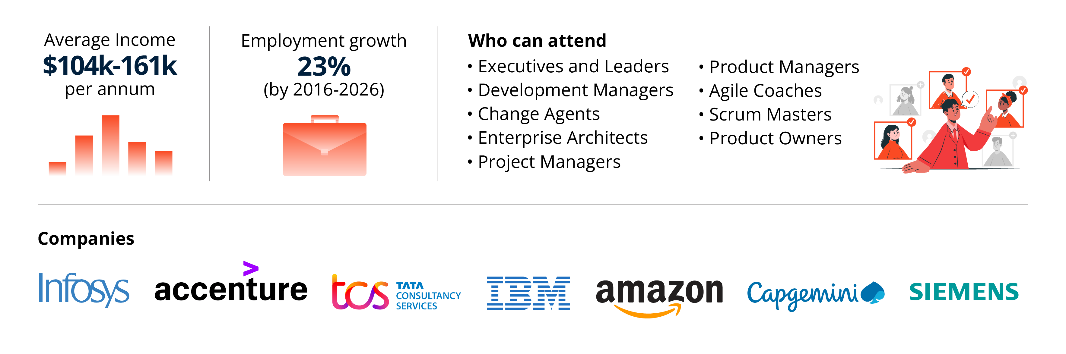 This course is ideal for executives, managers, Scrum Masters, product owners, Agile coaches, and team leads who want to drive organizational agility and lead SAFe implementations. It is also beneficial for project managers, program managers, and change agents responsible for scaling Agile practices across departments or portfolios.