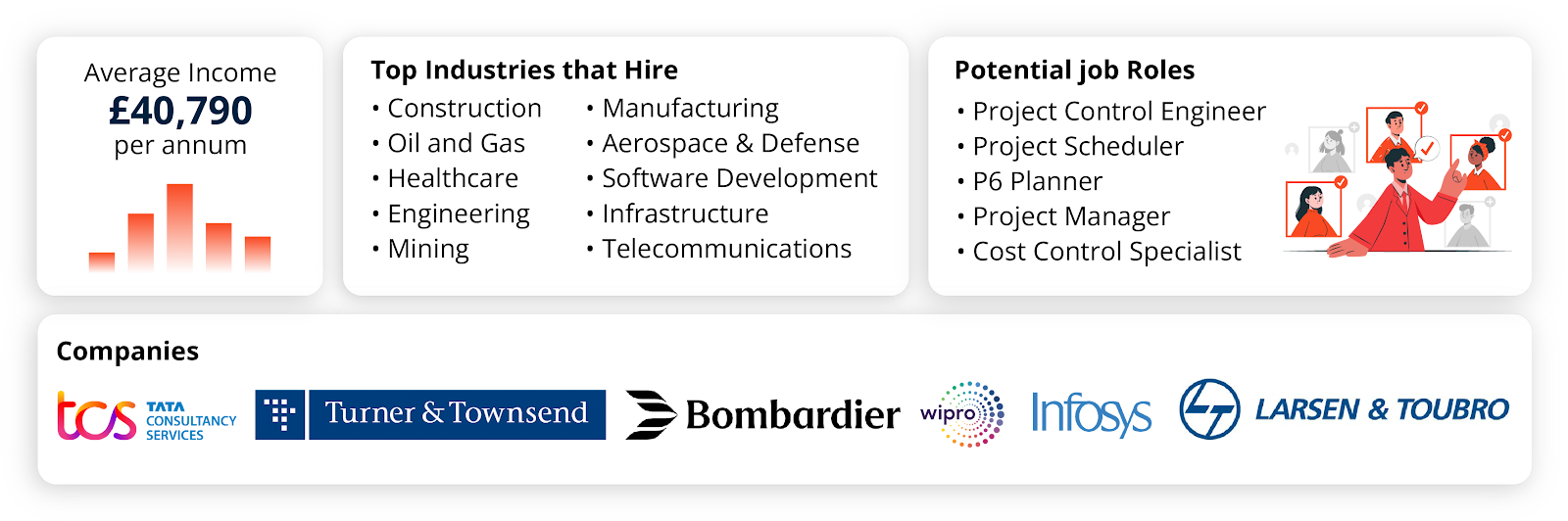 Achieving the Primavera P6 certification allows professionals to contribute towards larger projects. Professionals will become skilled in minimising risks and cutting down wastage of time. They will attain job roles like project planner or scheduler that qualify them to work for industries such as construction, IT, and manufacturing.