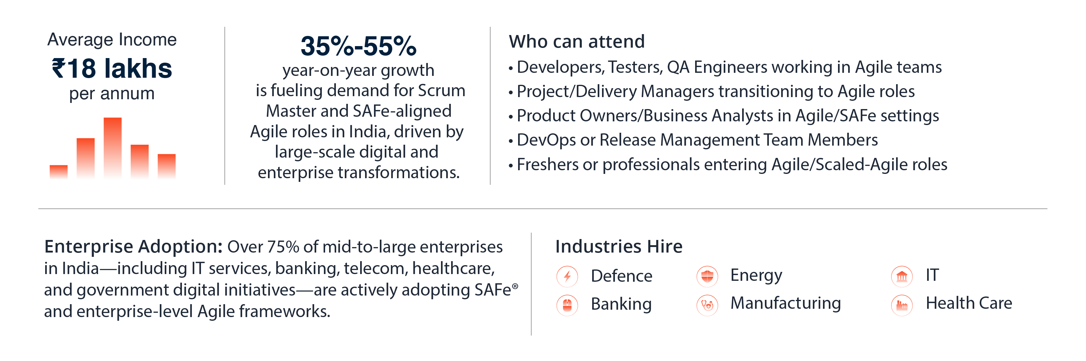 Understand core SAFe® principles, Agile basics, Scrum roles, and how Agile teams operate within a scaled environment to support enterprise-wide transformations.