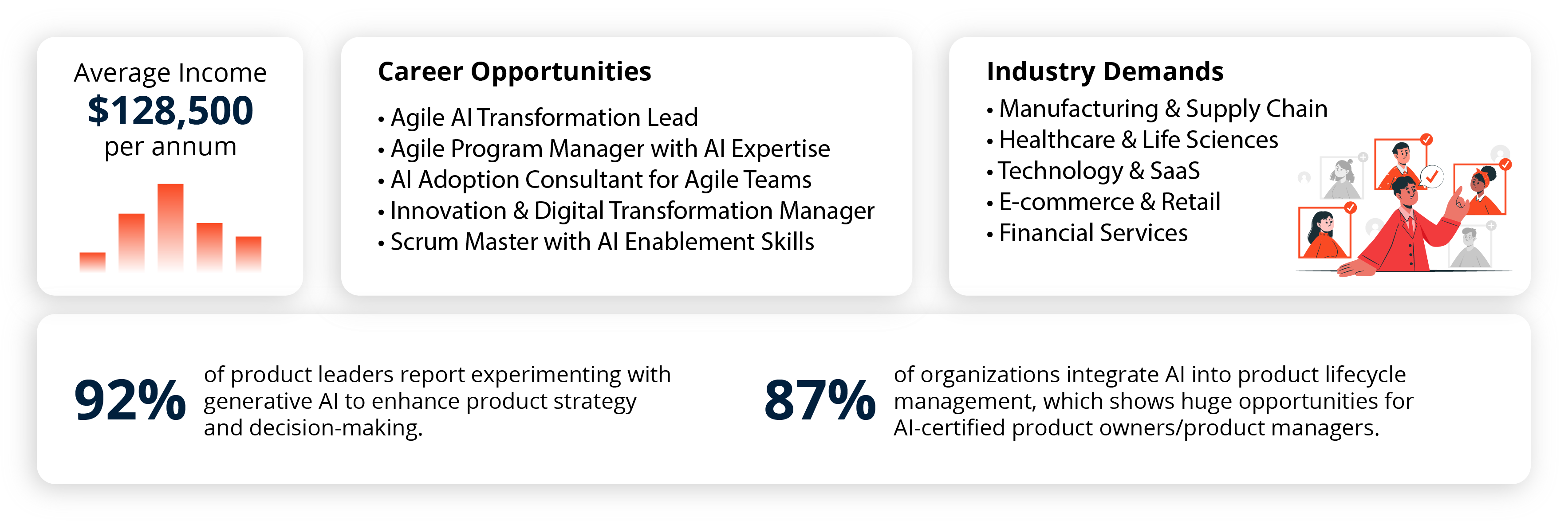 Whether your focus is on driving innovation, improving market responsiveness, or enhancing customer experience, this Generative AI course allows product owners and managers to lead with confidence in the AI-powered era.