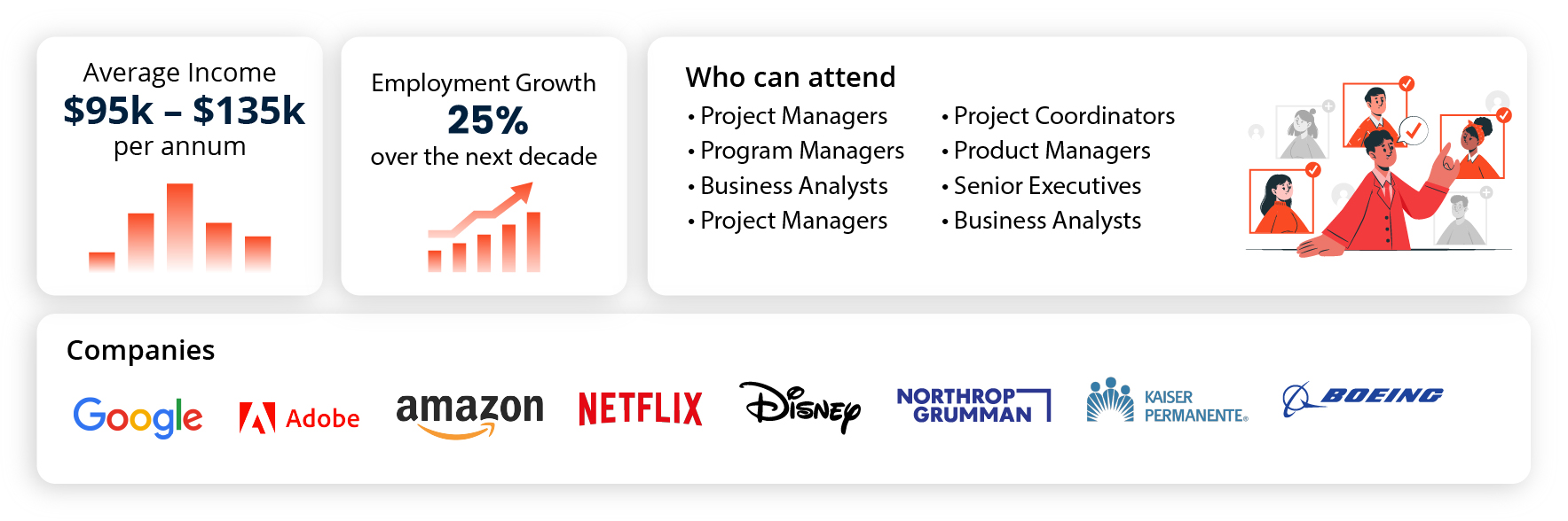 Second, it increases earning potential for the PMP-certified professionals in Los Angeles. significantly higher salaries compared to non-certified peers. The third reason is that certification shows credibility as well as leadership capabilities, which can position individuals for leadership positions. Last but not the least, it offers worldwide recognition and helps Los Angeles professionals stand out when it comes to job opportunities in other countries.
