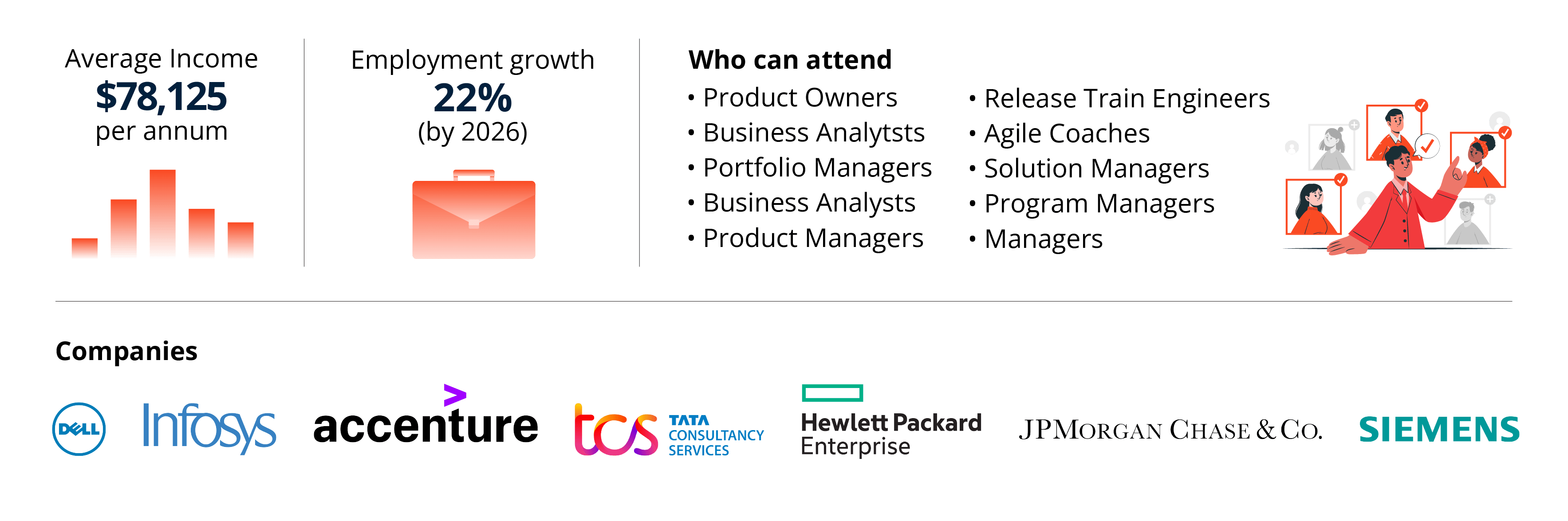 With Simpliaxis, you’ll deep dive completely into the SAFe framework alongside its ceremonies, roles, and artifacts that focuses on the overall responsibility of Product Manager and Product Owner.